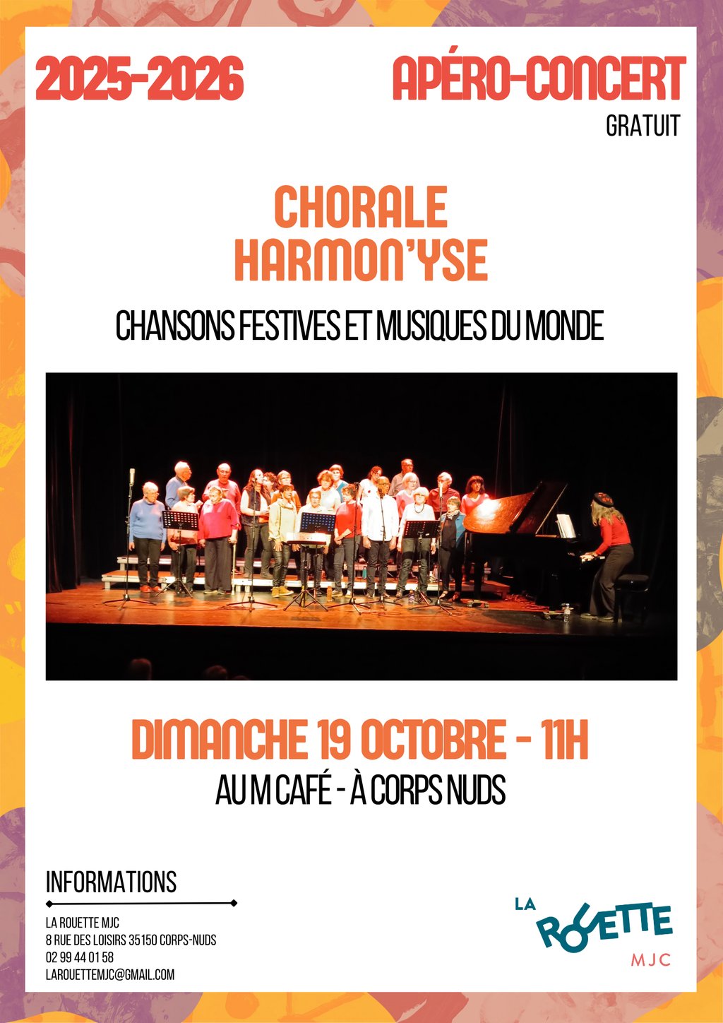 La chorale vous accueille pour un apéro concert à 11h auprès de Marion du M Café pour le plaisir des oreilles et des papilles.