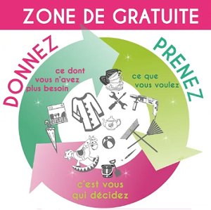 C'est quoi ? Ni fric ni troc, seulement de la gratuité . Nos placards, nos greniers regorgent de trésors cachés, de choses dont on ne veut plus, dont on ne se sert plus ou qu'on a oubliées. Cette zone de gratuité permet à tous ces objets( vêtements, outils livres…) de commencer une nouvelle vie. Ce qui ne sert plus à quelqu'un n'est pas définitivement perdu, ici on peut mettre en commun, échanger, partager, se débarrasser sans rajouter un déchet de plus dans la mare aux détritus contemporains.