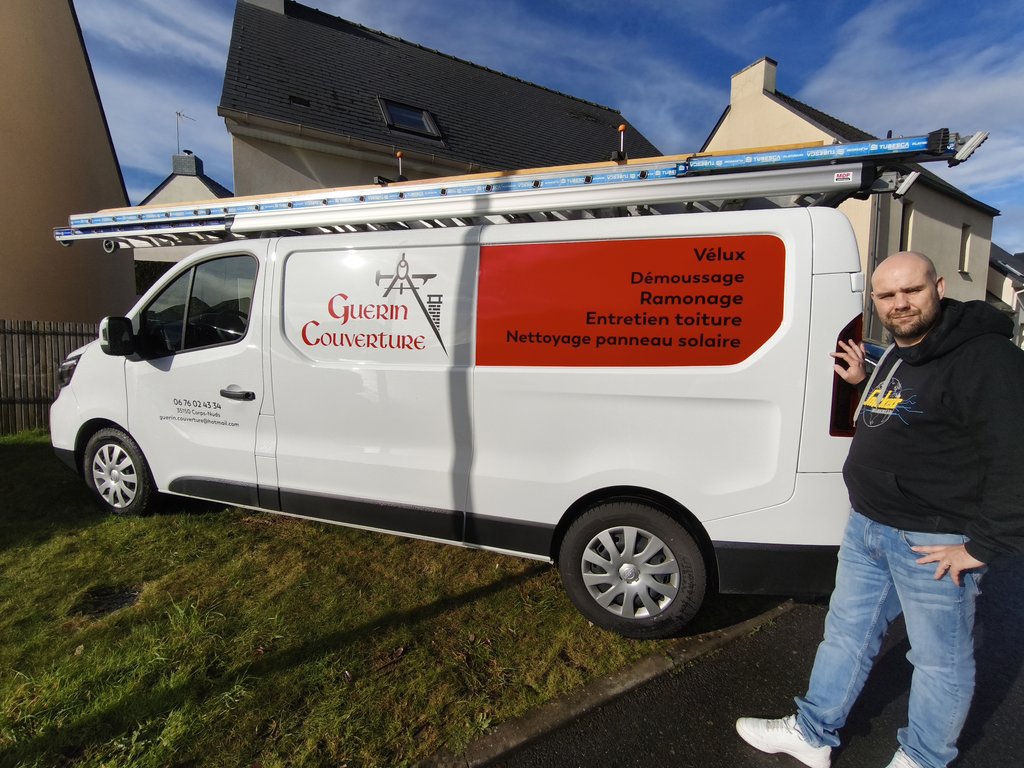Formé comme « ardoisier-zingueur » chez les Compagnons du devoir, et après quatre années de tour de France, Jonathan Guerin intervient également sur l’entretien des toitures (remplacement d’ardoises, reprise de faîtages, recherche de fuites…) et les réparations de gouttières.