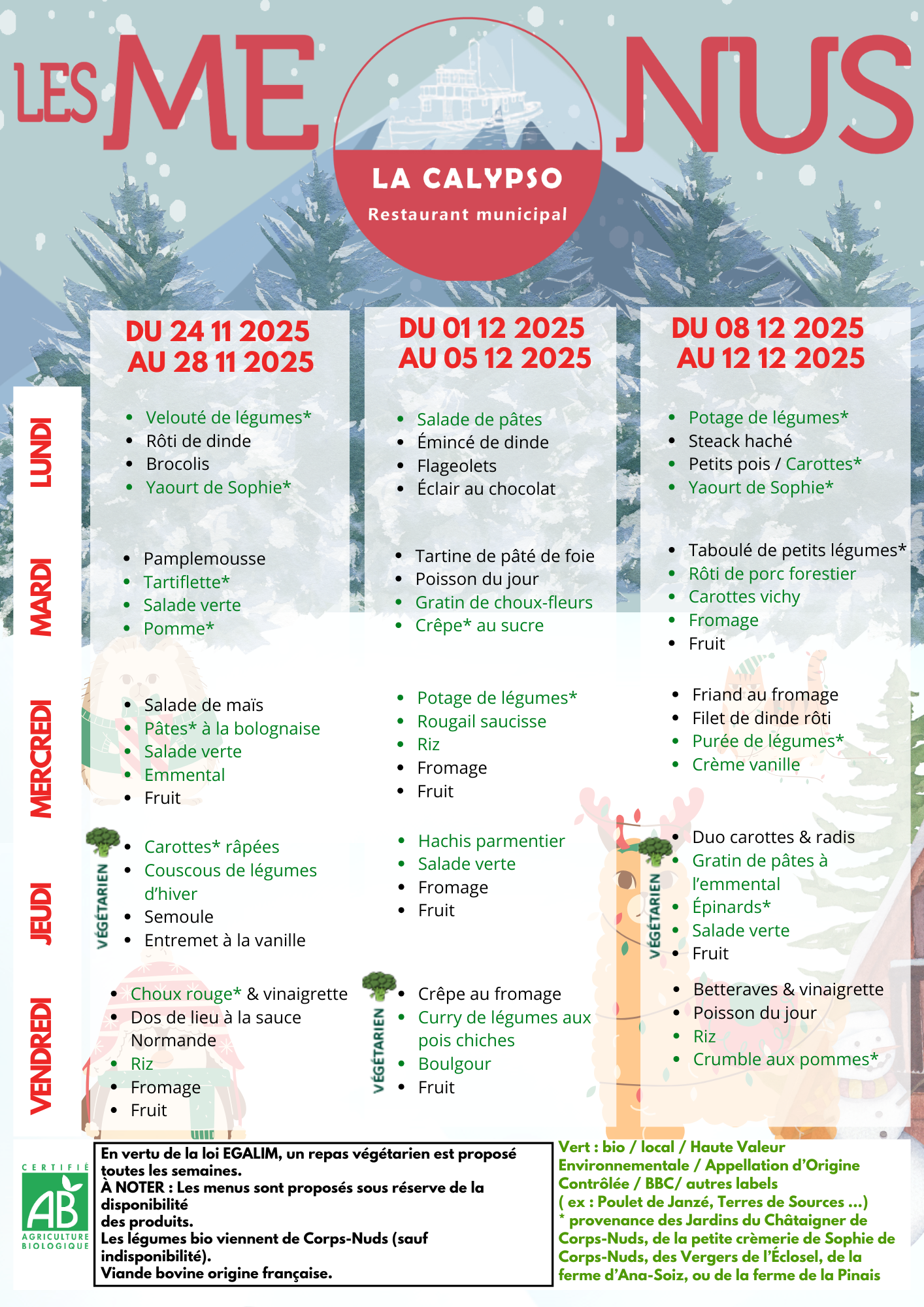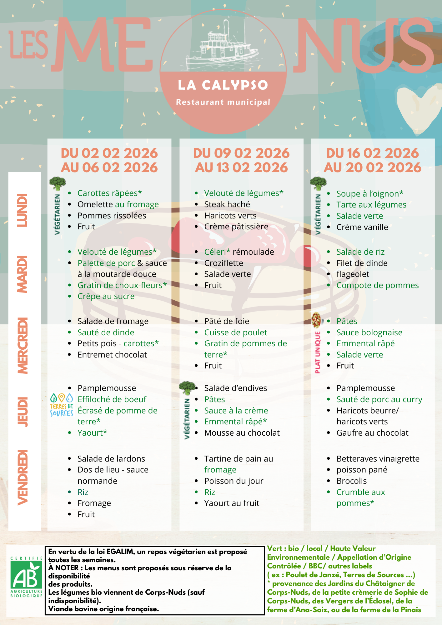 Le restaurant municipal "La Calypso" est situé au 24 rue François QUELAIN.